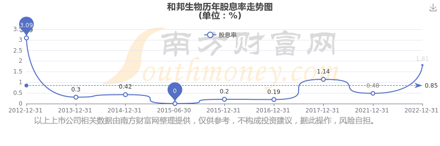 和邦生物最新一次公布的分紅方案為10派0.45元。本次權(quán)益分派股權(quán)登記日為2023年6月6日,除權(quán)除息日為2023年6月7日,派息日為2023年6月7日。