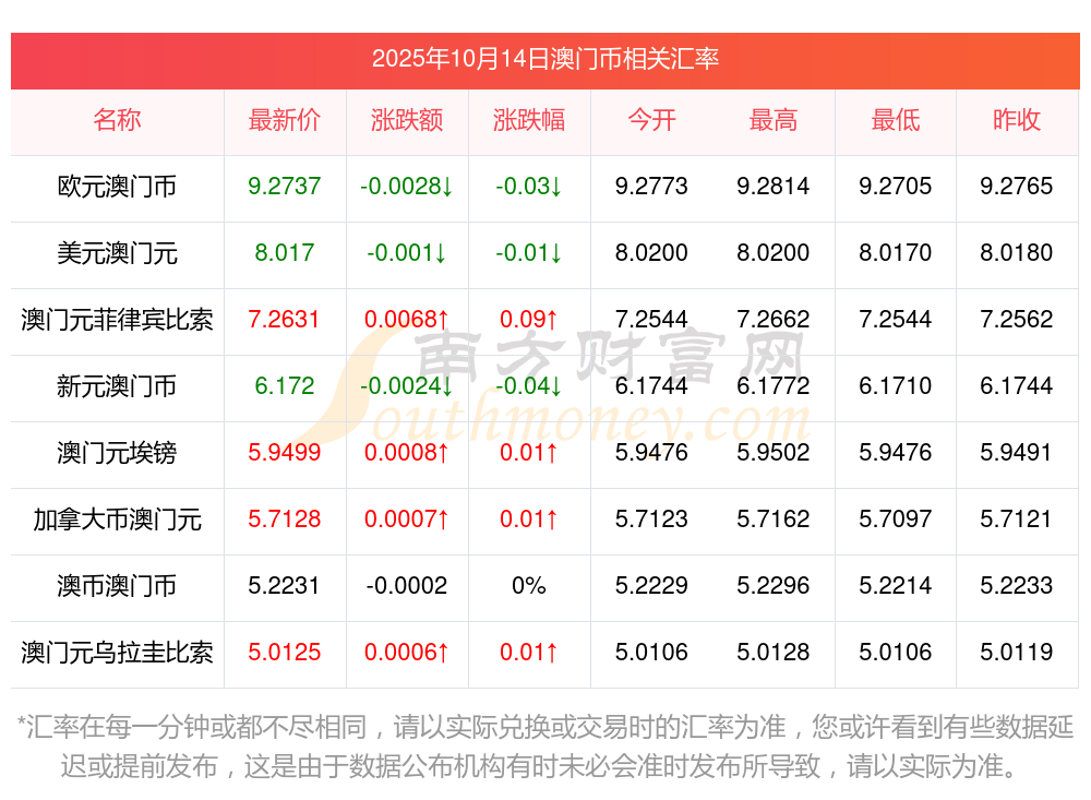 2025年10月14日澳門幣相關(guān)匯率查詢