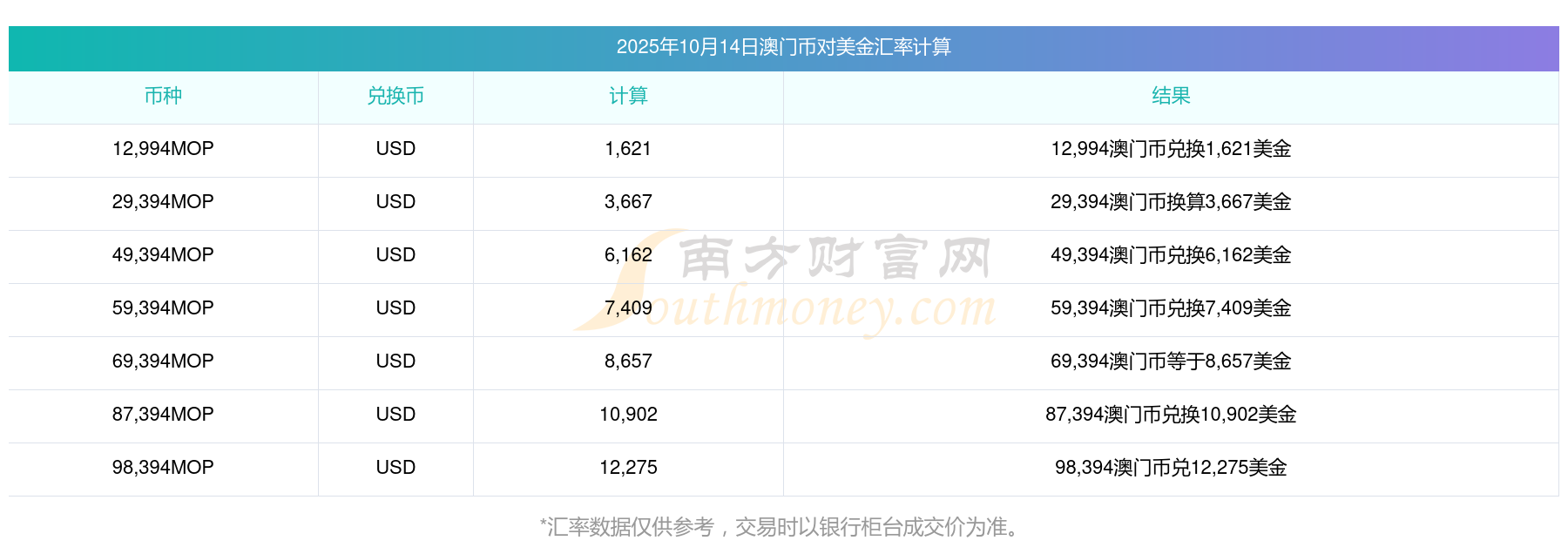 2025年10月14日匯率行情:19澳門幣對(duì)美金匯率多少