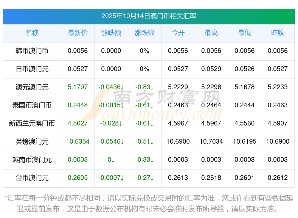 2025年10月14日澳門幣相關(guān)匯率查詢