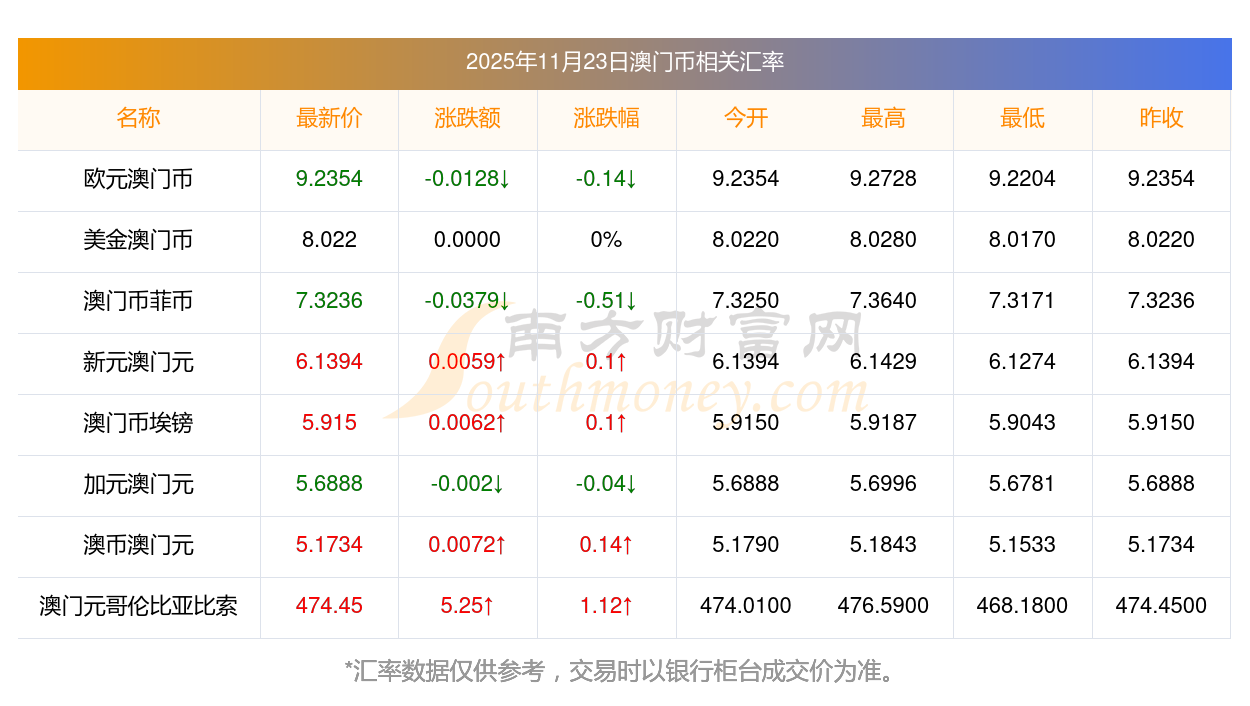 2025年11月23日澳門幣相關(guān)匯率查詢