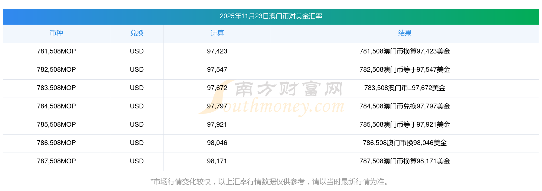 現(xiàn)在1澳門幣與美元的匯率是多少?2025年11月23日