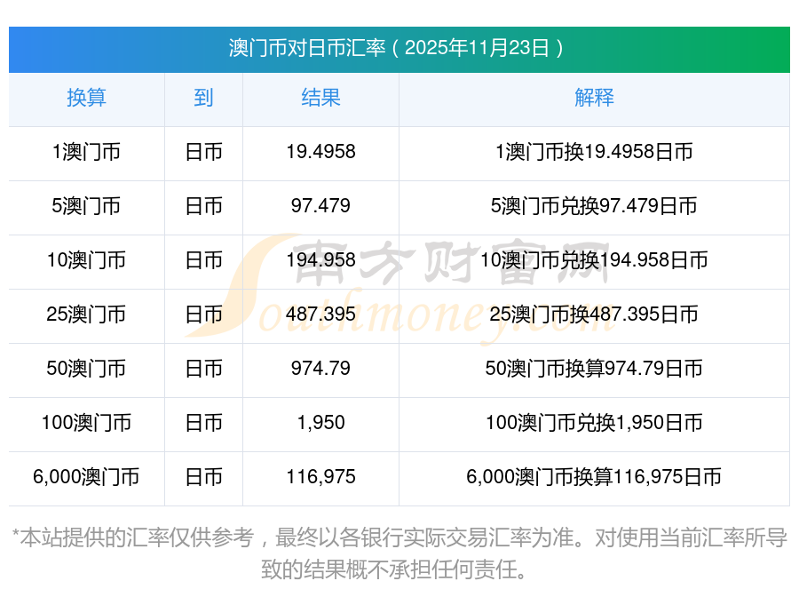 每日匯率查詢—澳門幣對日幣匯率調(diào)整多少11-23