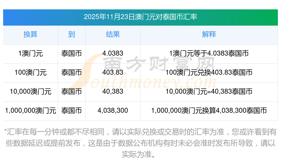 7澳門(mén)元等于多少泰國(guó)幣的?(2025年11月23日)