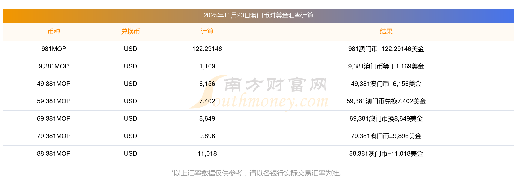 2025年11月23日匯率行情:36澳門幣對美金匯率多少
