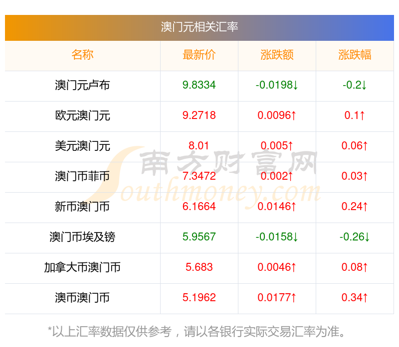 2025年11月26日澳門元相關(guān)匯率查詢
