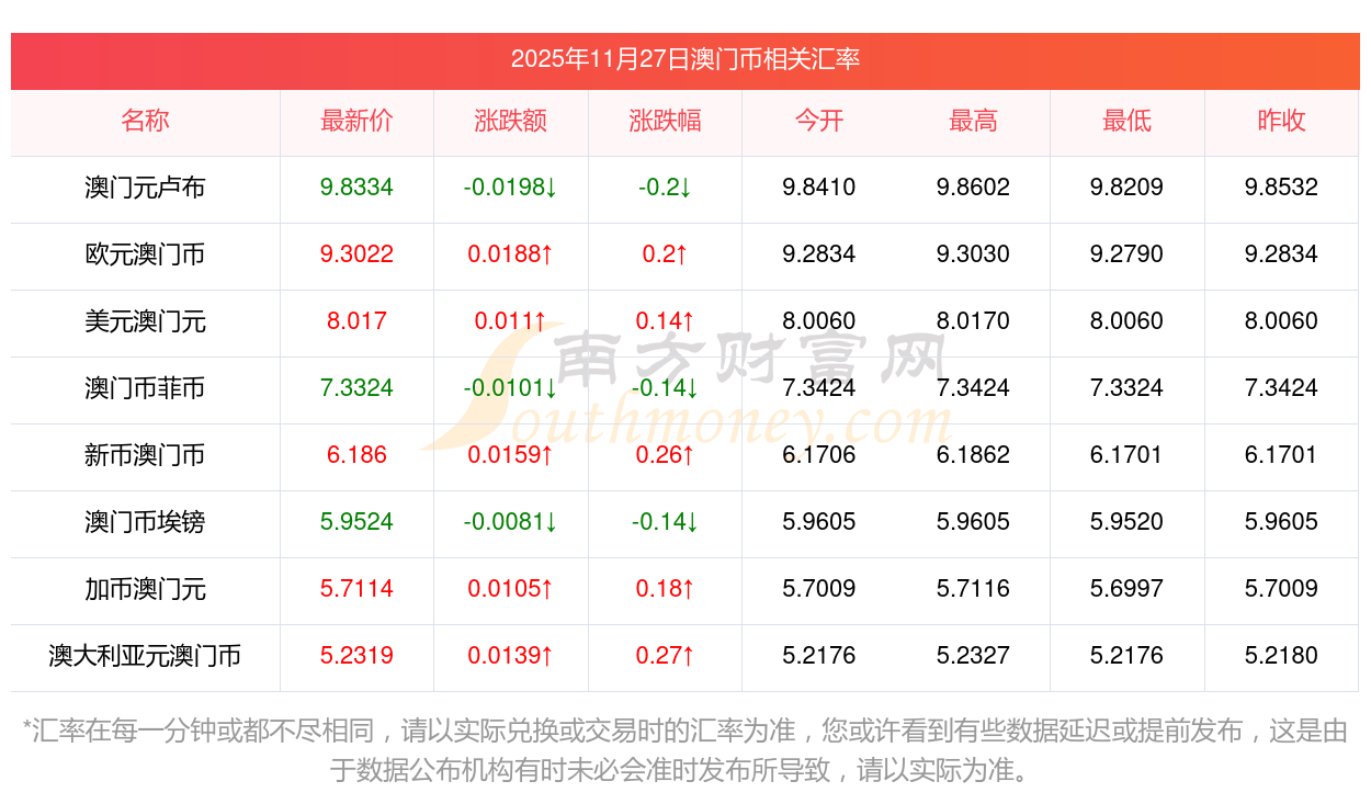 2025年11月27日澳門幣相關(guān)匯率查詢