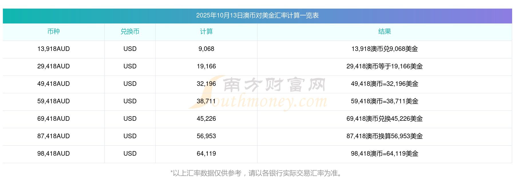 南方財富網(wǎng)為您提供澳幣對美金匯率最新價格詳情。