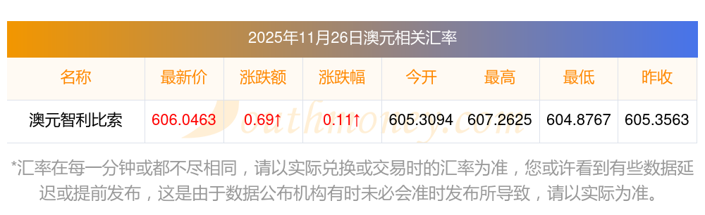 今8澳元兌換智利比索的匯率是多少 外匯如何查詢2025/11/26