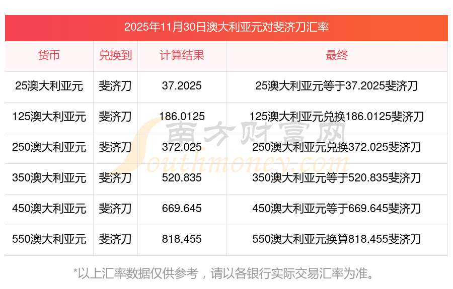 匯率查詢(xún) | 6萬(wàn)澳大利亞元轉(zhuǎn)換斐濟(jì)刀匯率是多少? 11-30