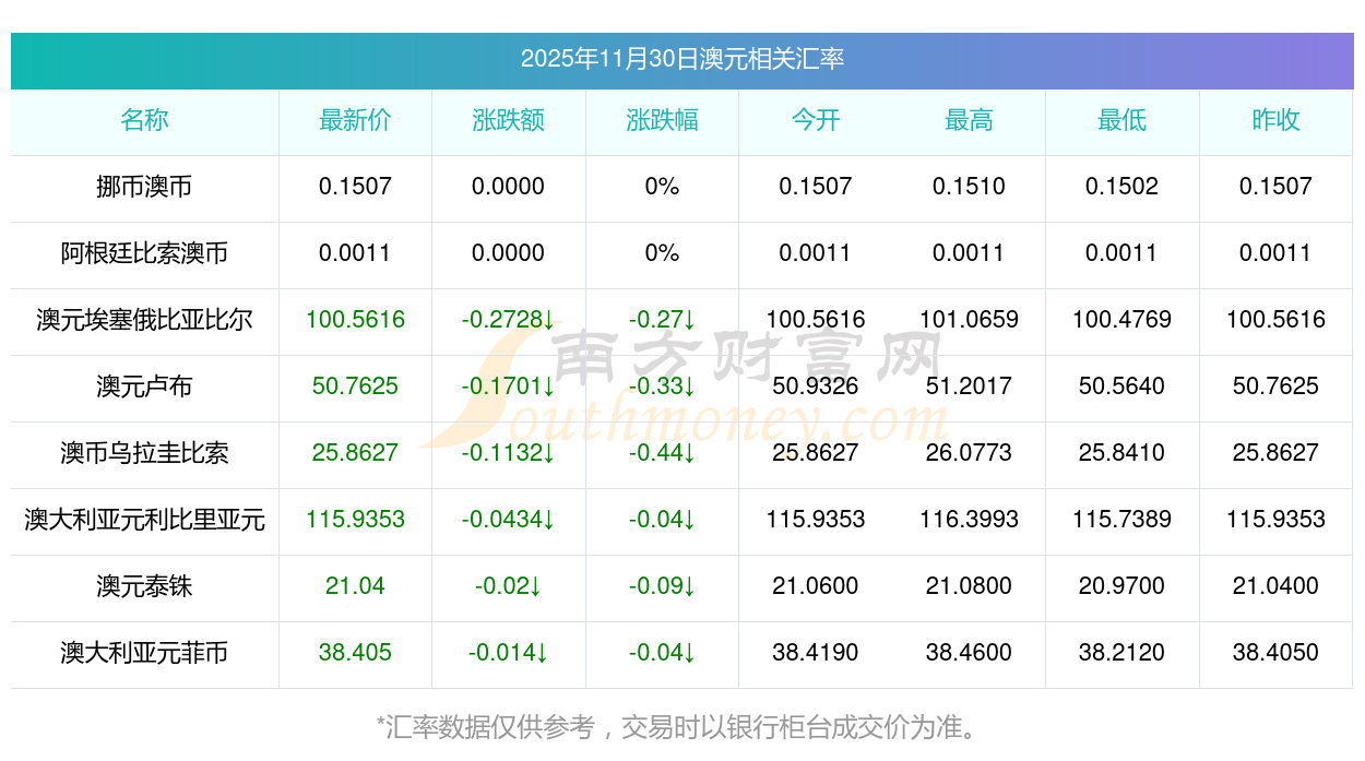 南方財富網(wǎng)為您提供澳元對阿幣匯率最新價格詳情。