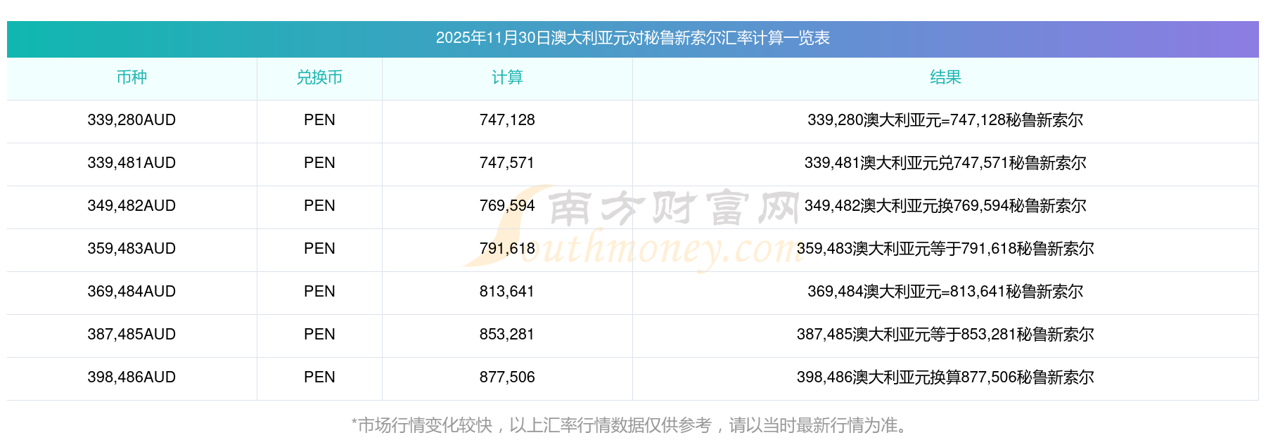 今日匯率查詢|澳大利亞元兌換秘魯新索爾最新查詢11月30日