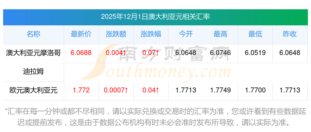 2025年12月1日澳大利亞元相關(guān)匯率查詢(xún)