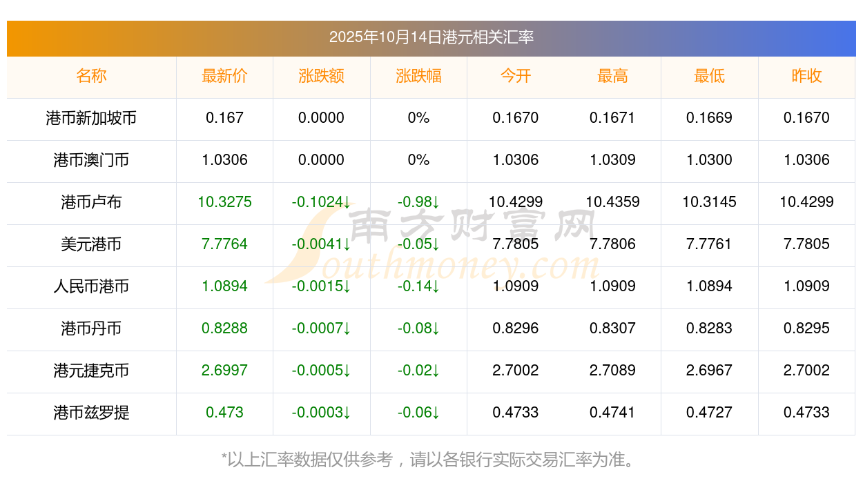 - 2025年10月13日匯率行情:4港元對(duì)美金匯率多
