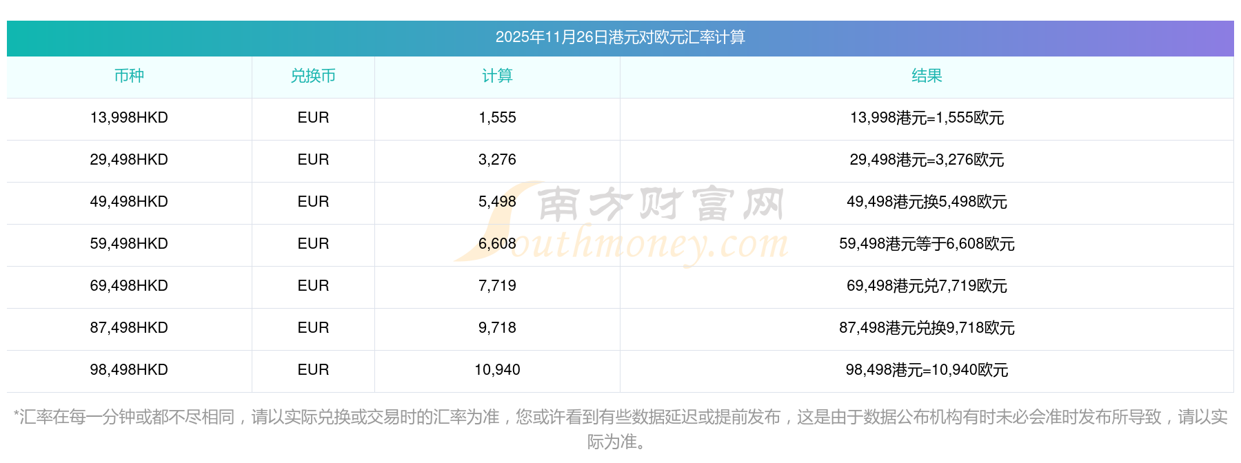 今天港元對歐元匯率_7港元對歐元匯率多少(2025/11/26)