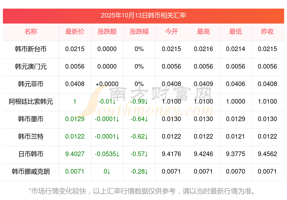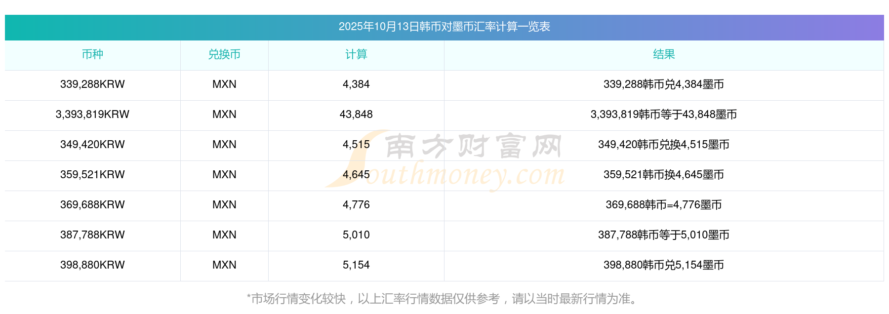 南方財富網(wǎng)為您提供韓幣對墨幣匯率最新價格詳情。