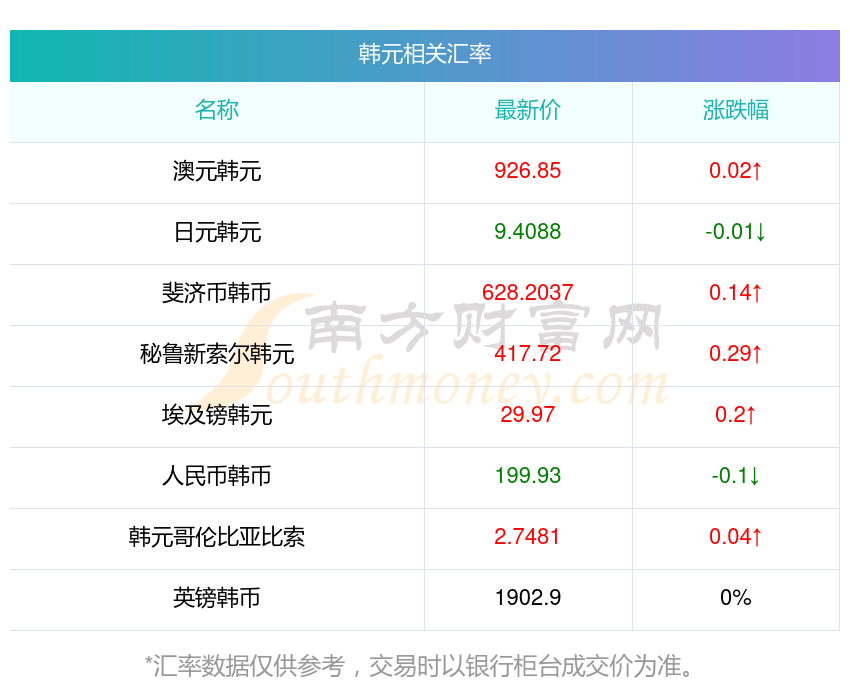 南方財富網(wǎng)為您提供韓元對林吉特匯率最新價格詳情。
