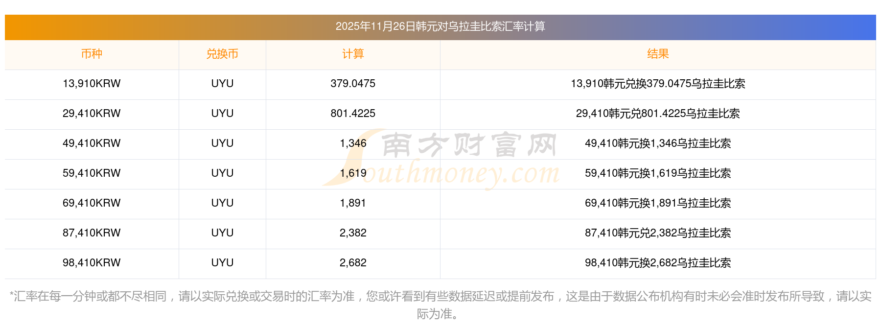 今日貨幣匯率調(diào)整:1024韓元對(duì)烏拉圭比索匯率多少?11-26