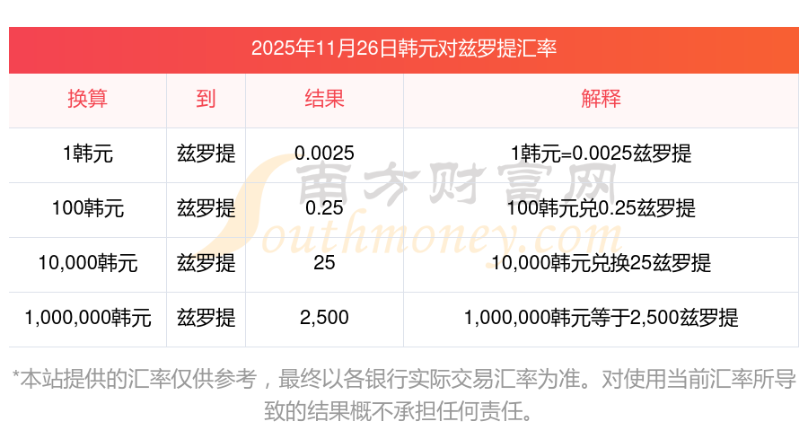 南方財(cái)富網(wǎng)為您提供韓元換成茲羅提匯率最新價格詳情。