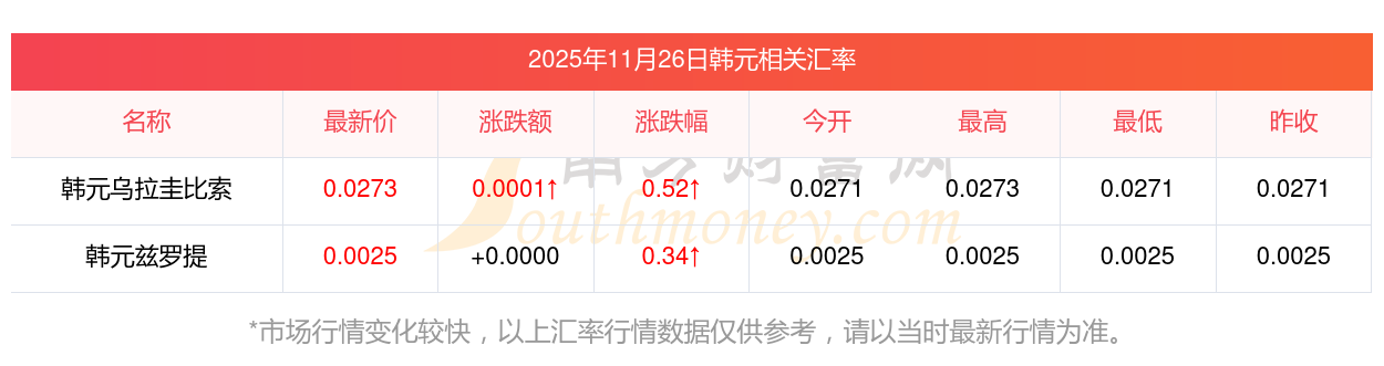 今天韓元140換成茲羅提匯率多少?2025年11月26日