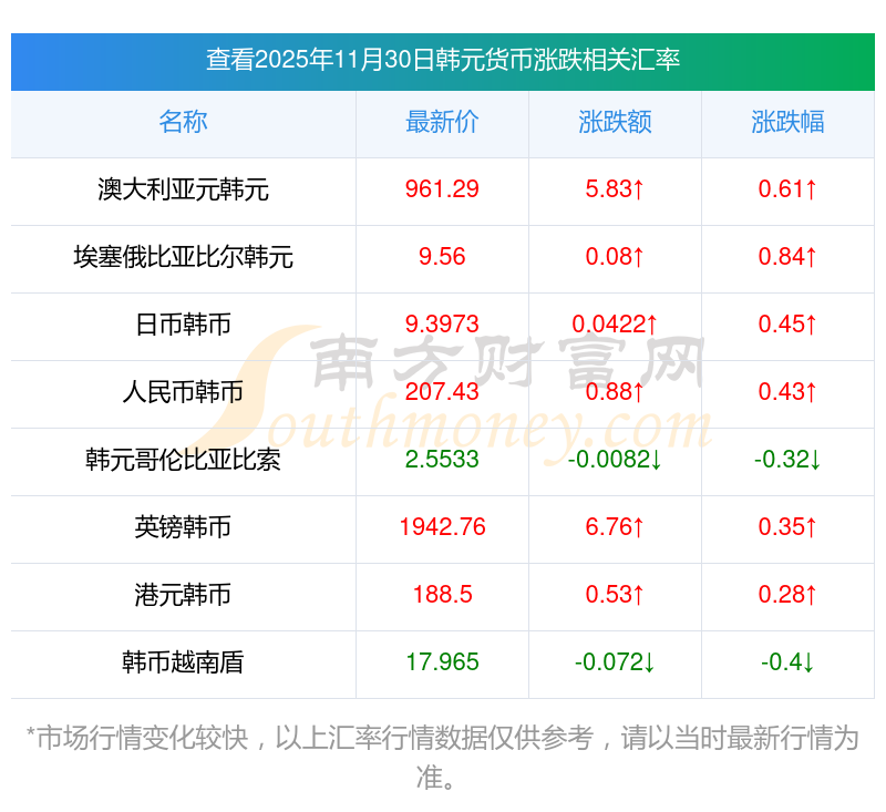 2025年11月30日韓元相關(guān)匯率查詢