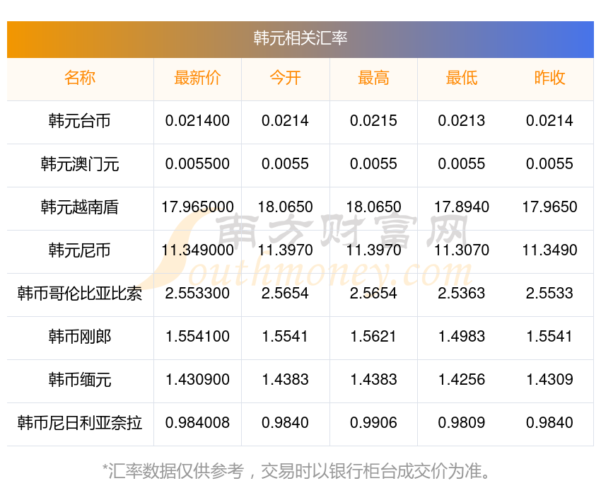 2025年11月30日韓元相關匯率查詢