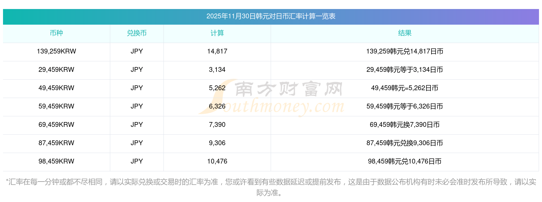 南方財(cái)富網(wǎng)為您提供韓元對日幣匯率最新價(jià)格詳情。