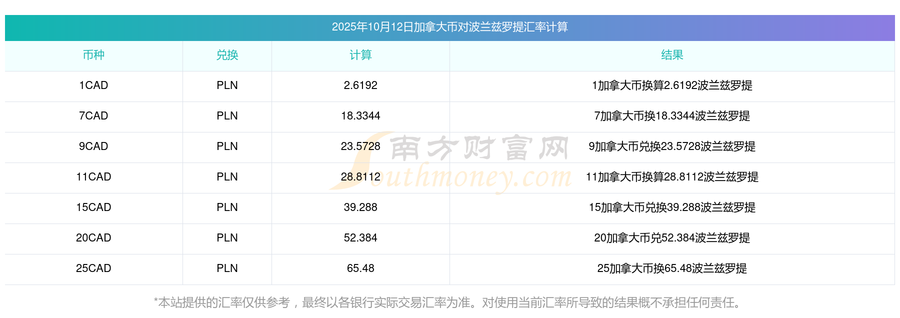 查詢_2025年10月12日10加拿大幣兌換波蘭茲羅提匯率