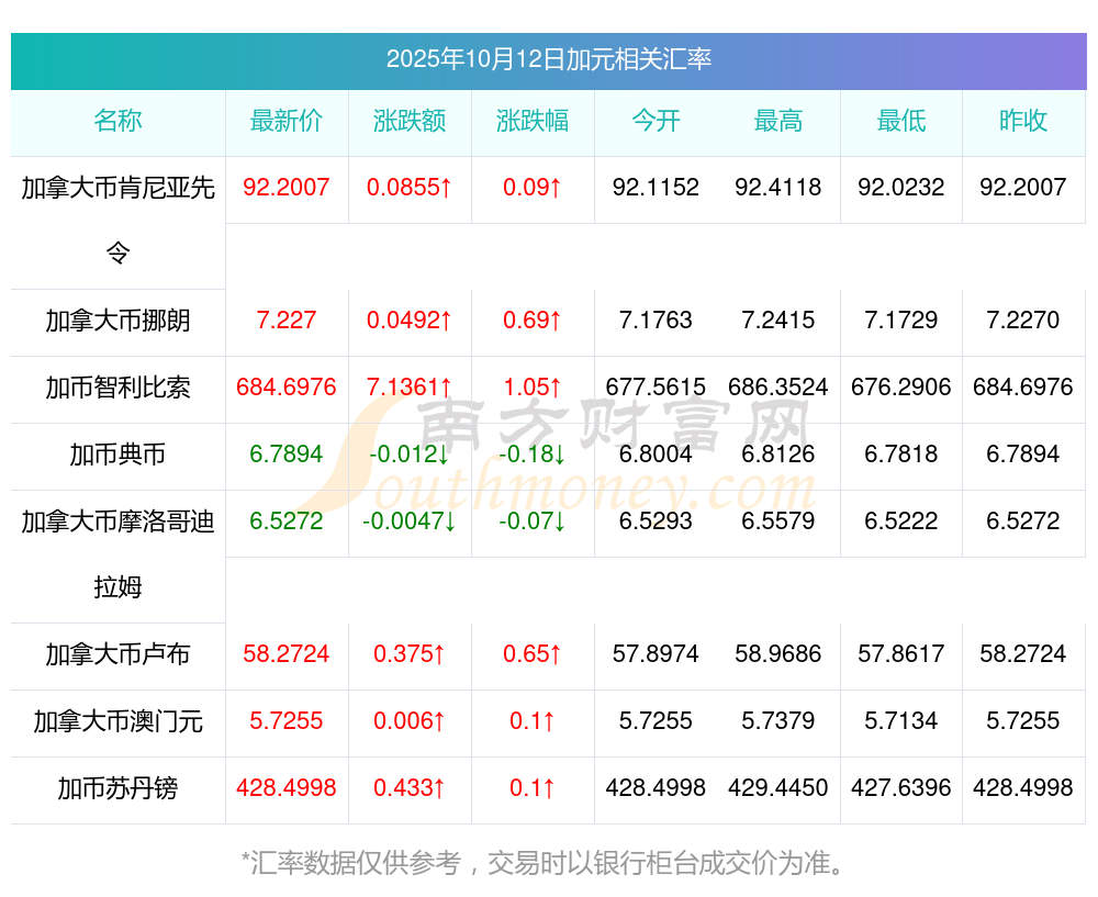 2025年10月12日加元相關(guān)匯率查詢