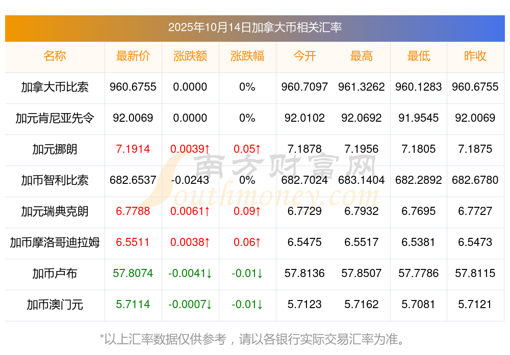 2025年10月14日加拿大幣相關(guān)匯率查詢
