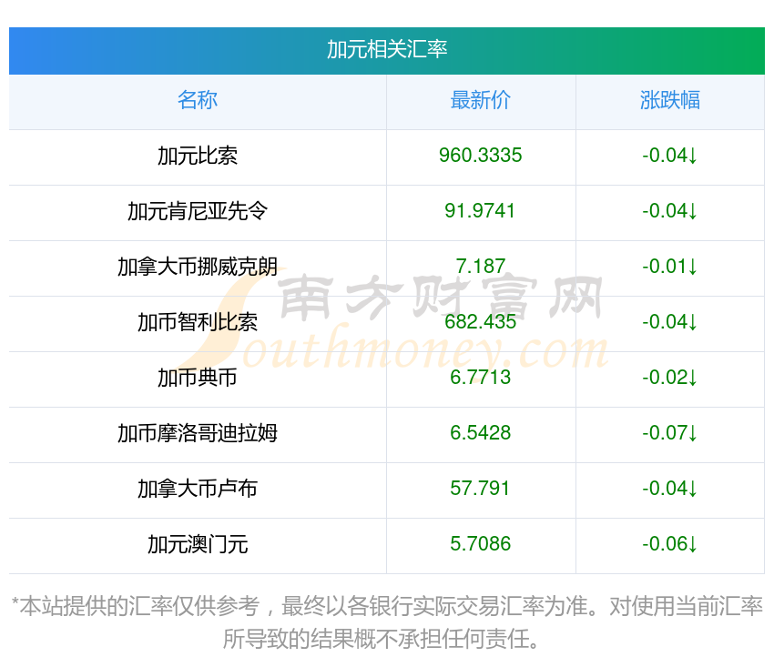 2025年10月14日加元相關(guān)匯率查詢