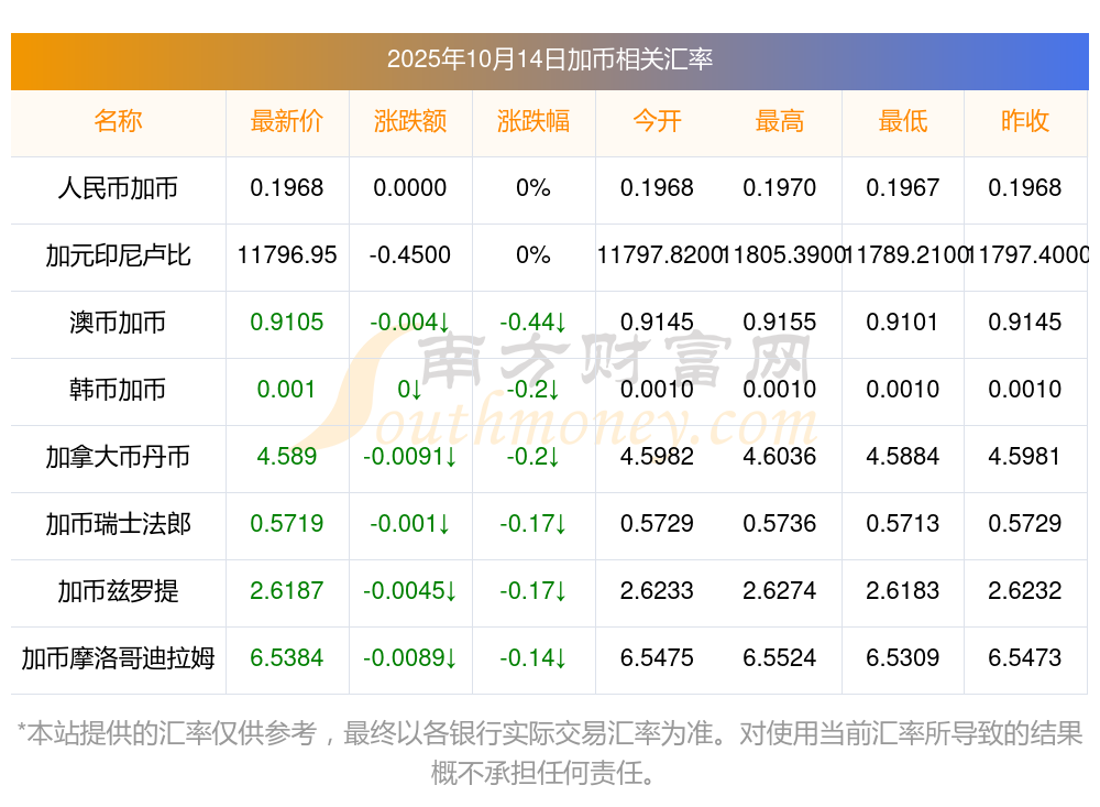 根據(jù)2025年10月14日匯率計算,CAD兌換CHF匯率最新價0.571900: