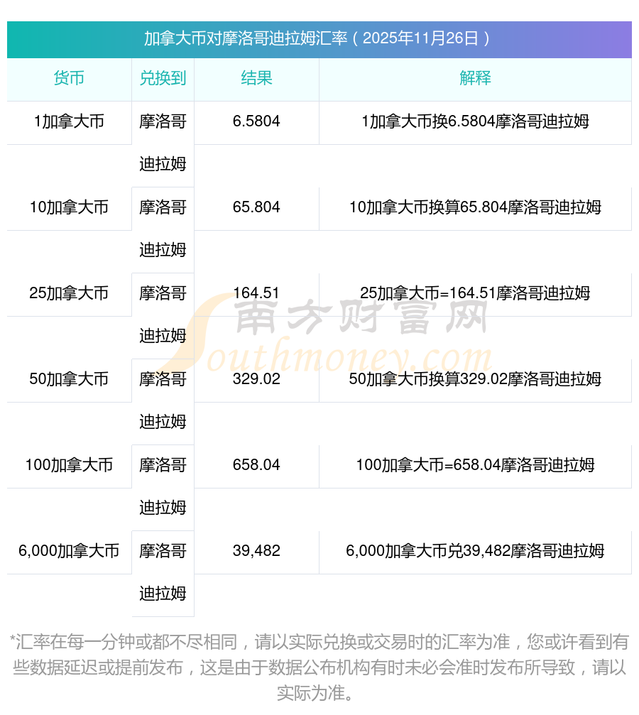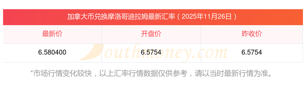 今日加拿大幣匯價(jià):2025年11月26日28加拿大幣兌摩洛哥迪拉姆匯價(jià)一覽表