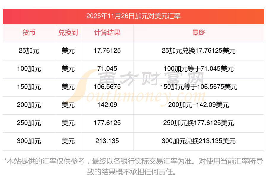 南方財(cái)富網(wǎng)為您提供加元對美元匯率最新價格詳情。