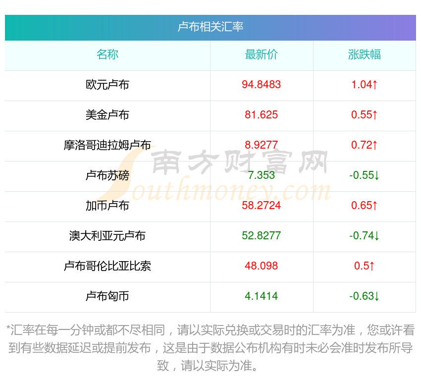 南方財富網(wǎng)為您提供盧布對牙買加幣匯率最新價格詳情。