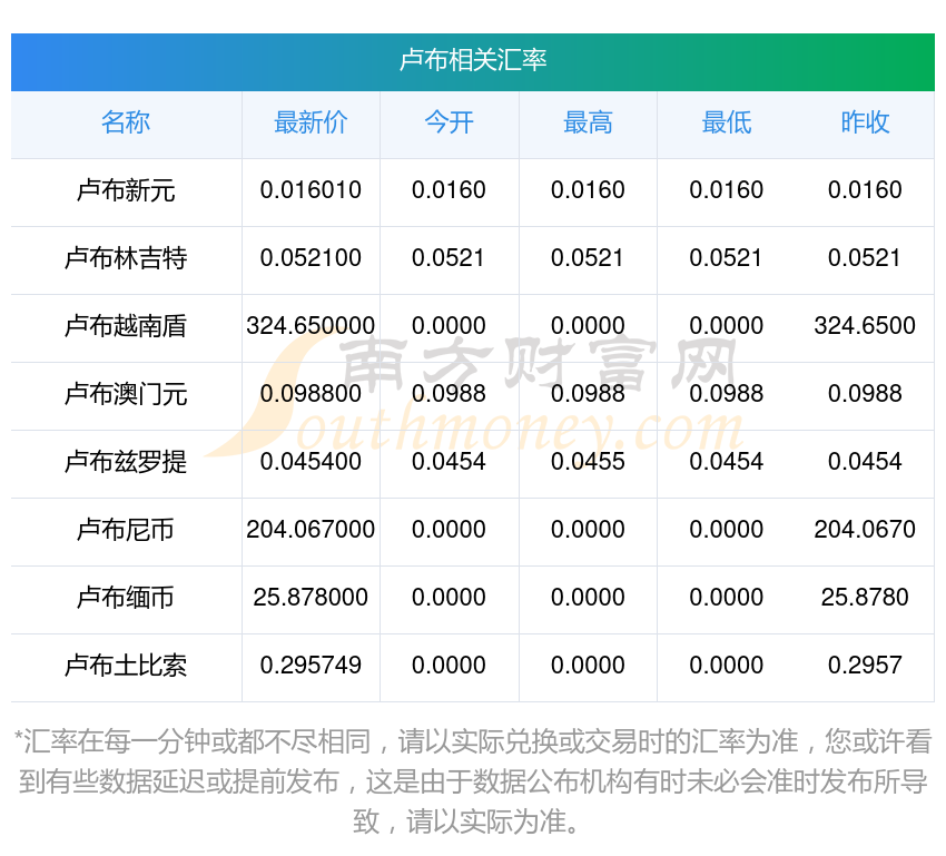 南方財富網(wǎng)為您提供盧布對挪朗匯率最新價格詳情。