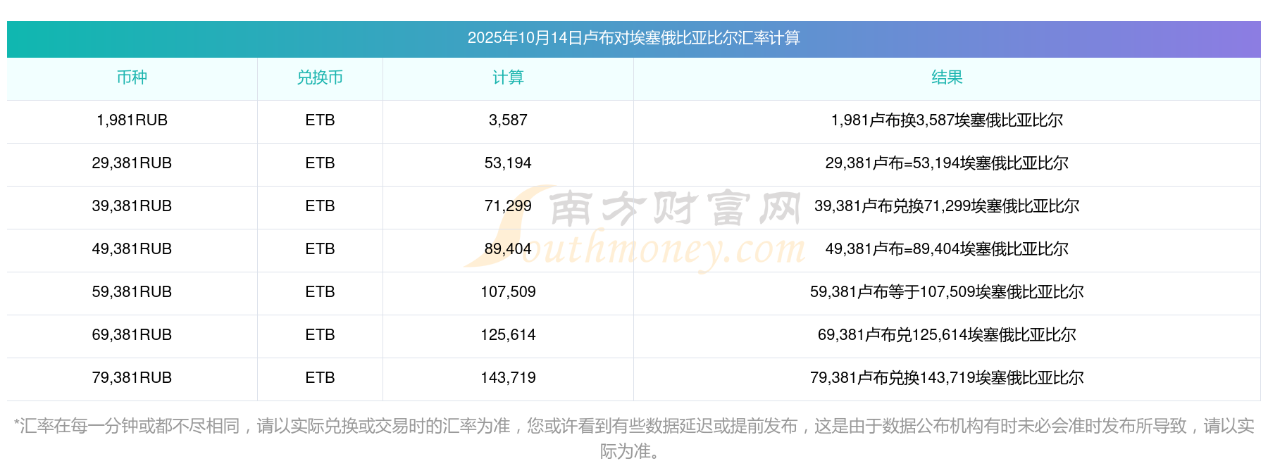 今日16盧布埃塞俄比亞比爾兌換匯率_實(shí)時(shí)匯率(2025年10月14日)