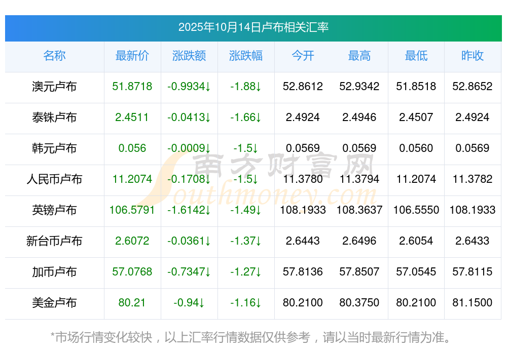 今日盧布兌阿根廷比索最新多少?10月14日
