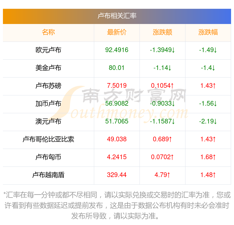 南方財(cái)富網(wǎng)為您提供盧布對(duì)阿根廷比索匯率最新價(jià)格詳情。