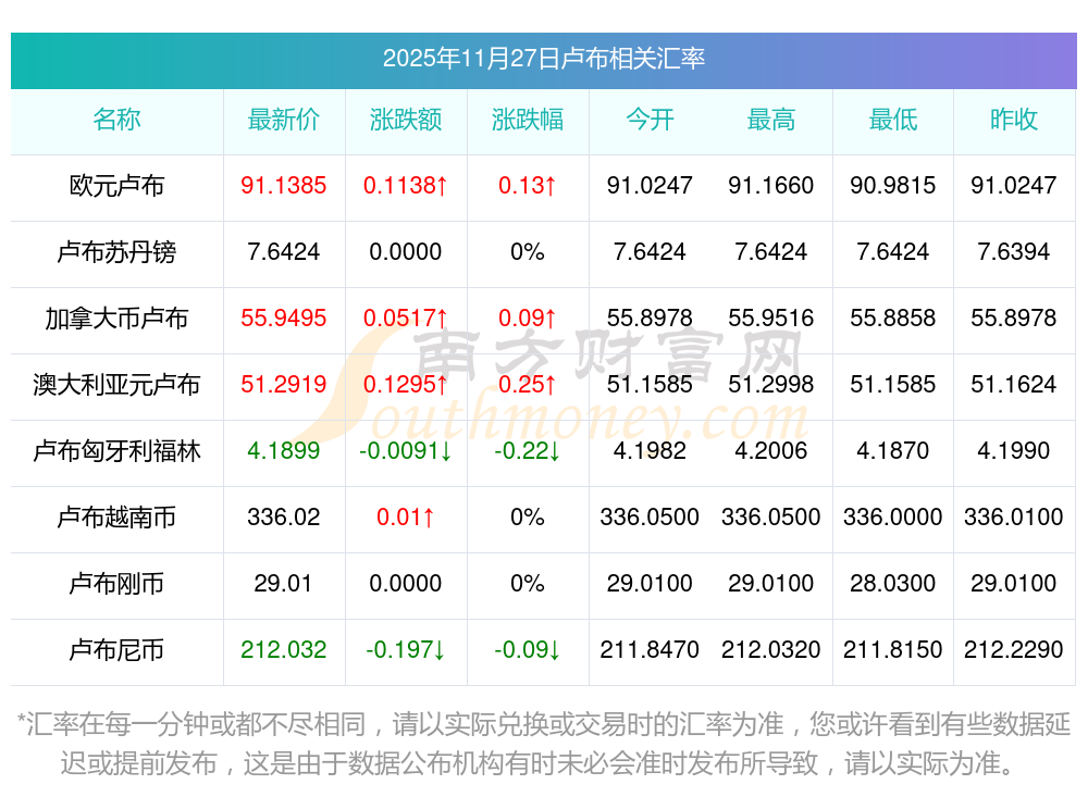 2025年11月27日盧布相關(guān)匯率查詢