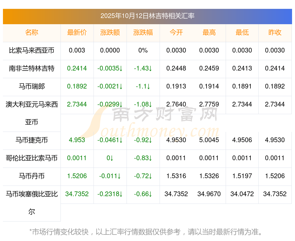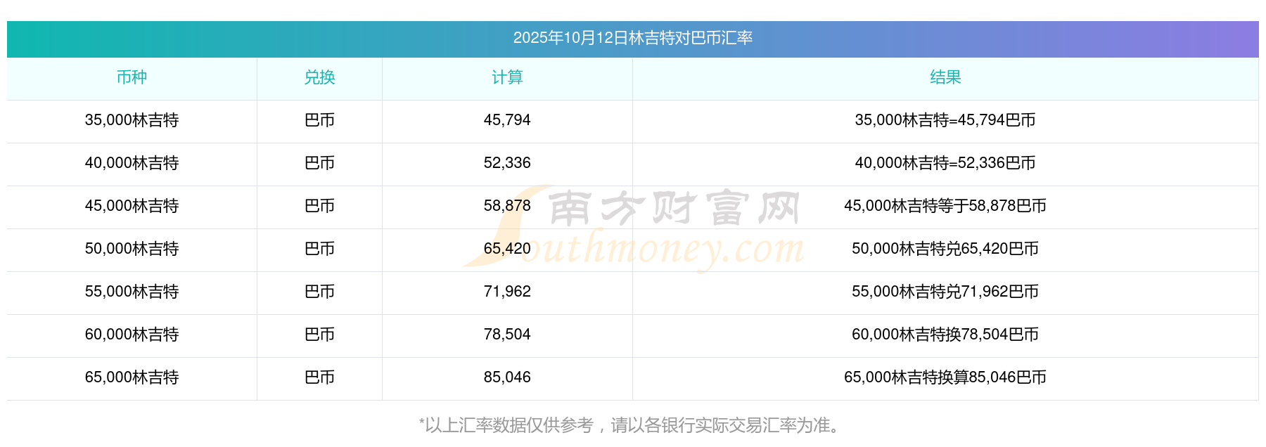 南方財富網(wǎng)為您提供林吉特對巴幣匯率最新價格詳情。