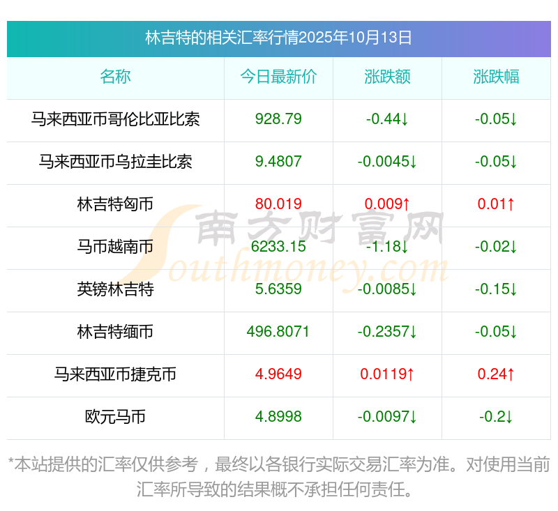 根據(jù)2025年10月13日匯率,林吉特兌換丹幣匯率最新1.523900,今開1.5220,昨收1.5206,最高1.5256,最低1.5194。