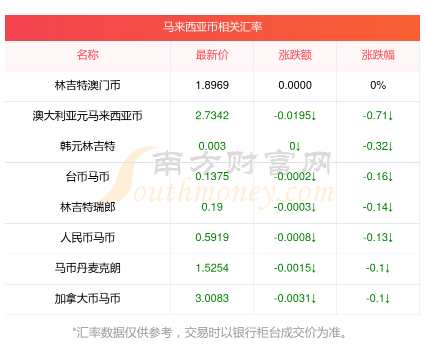 2025年10月14日馬來(lái)西亞幣相關(guān)匯率查詢(xún)
