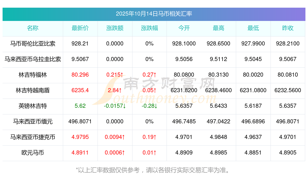 2025年10月14日馬幣相關(guān)匯率查詢