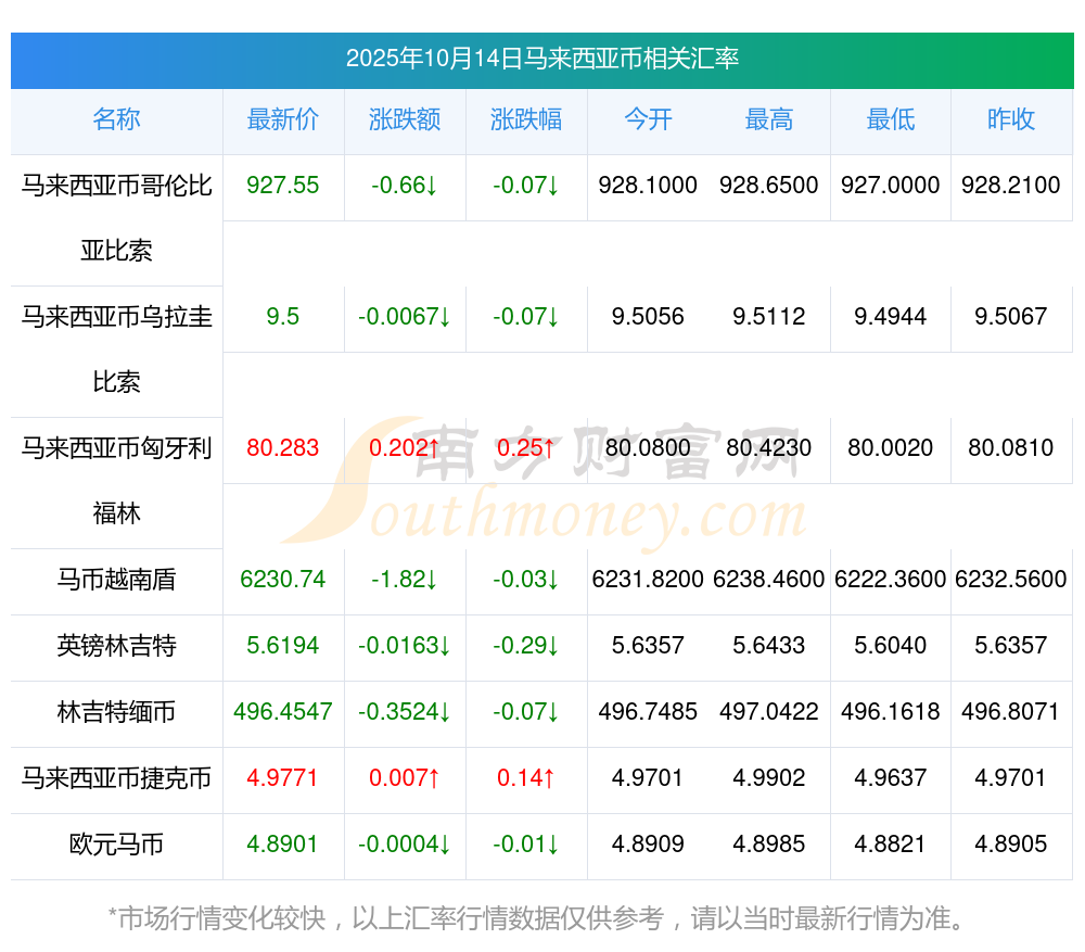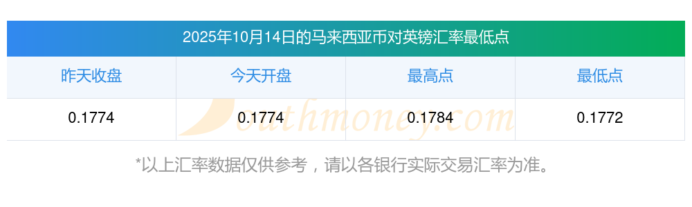 2025年10月14日馬來西亞幣兌換英鎊匯率是:0.178212025年10月14日英鎊換馬來西亞幣匯率是:5.61136