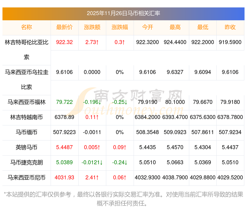 根據(jù)2025年11月26日匯率計算,MYR兌換PHP匯率最新價14.236300: