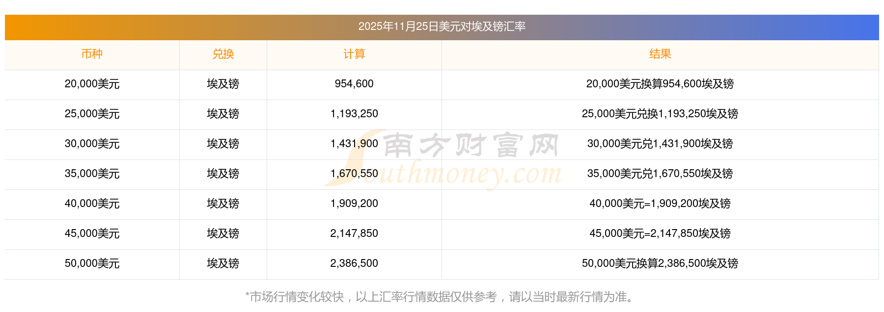 新一天:2025年11月25日美元兌換埃及鎊匯率查詢