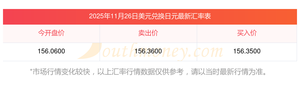 日元今日匯率實(shí)時查詢 109美元對日元匯率2025年11月26日
