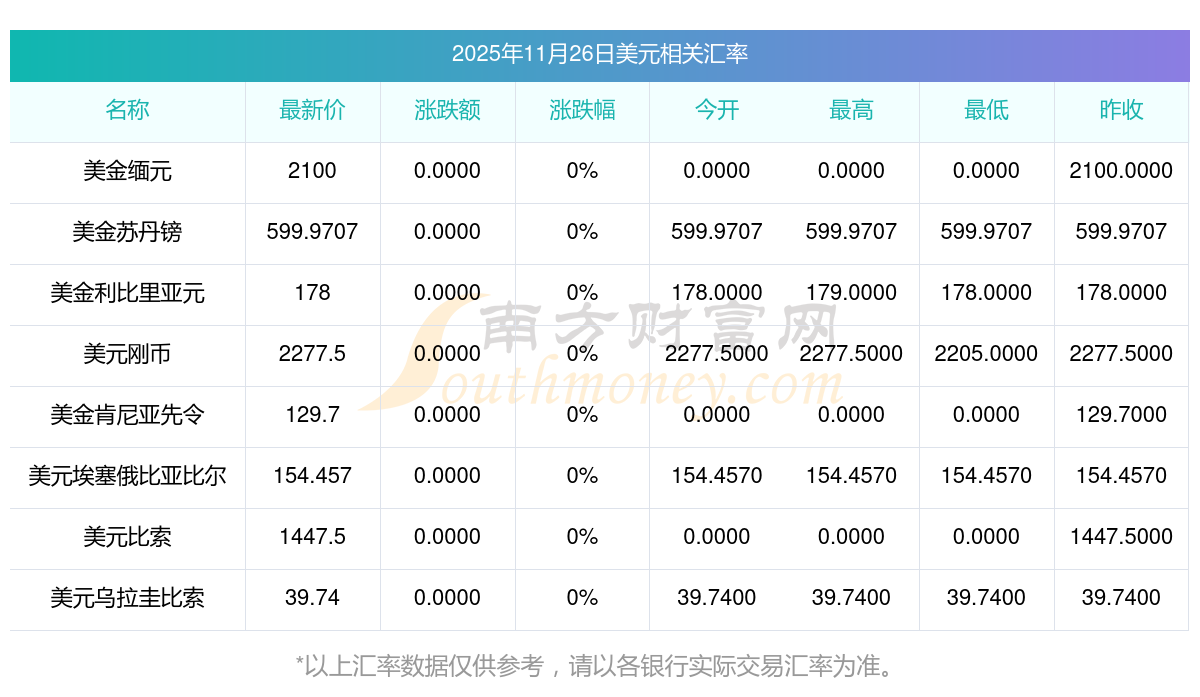匯率數(shù)據(jù)僅供參考,交易時(shí)以銀行柜臺(tái)成交價(jià)為準(zhǔn)。
