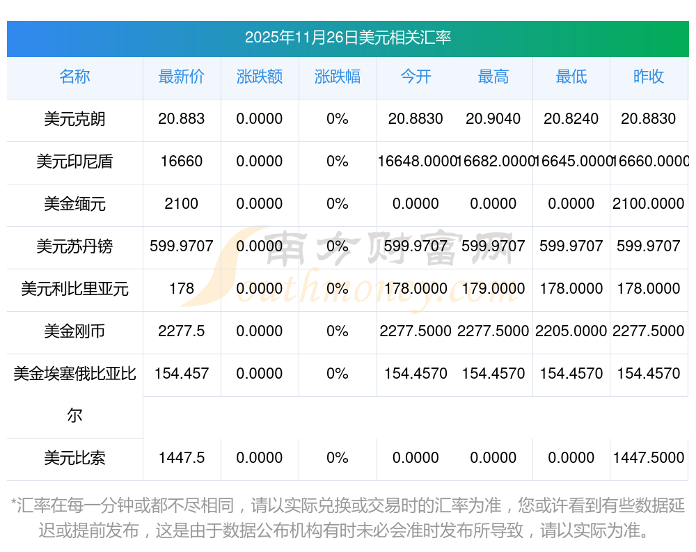 匯率數(shù)據(jù)僅供參考,交易時(shí)以銀行柜臺(tái)成交價(jià)為準(zhǔn)。